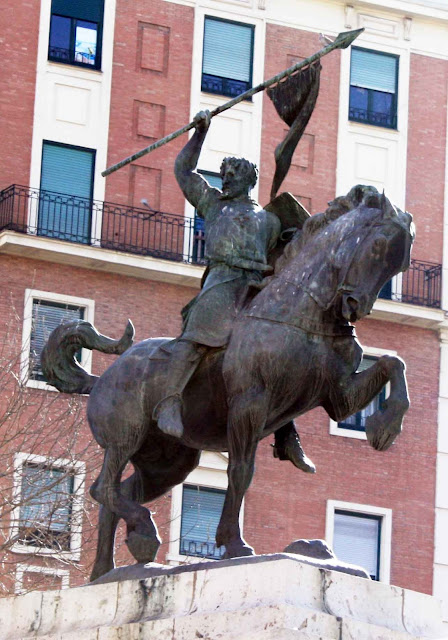 Aquí, encima de estas líneas tenemos la estatua del Cid Campeador en Valencia. Don Rodrigo Díaz de Vivar no fue un rey, fue un caballero que alquilaba sus servicios a quien le pagaba y al que los Romaces nos lo presentan como un caballero ejemplar. Anthony Mann dirigió una película con Charlton Heston, muy bonita por cierto.